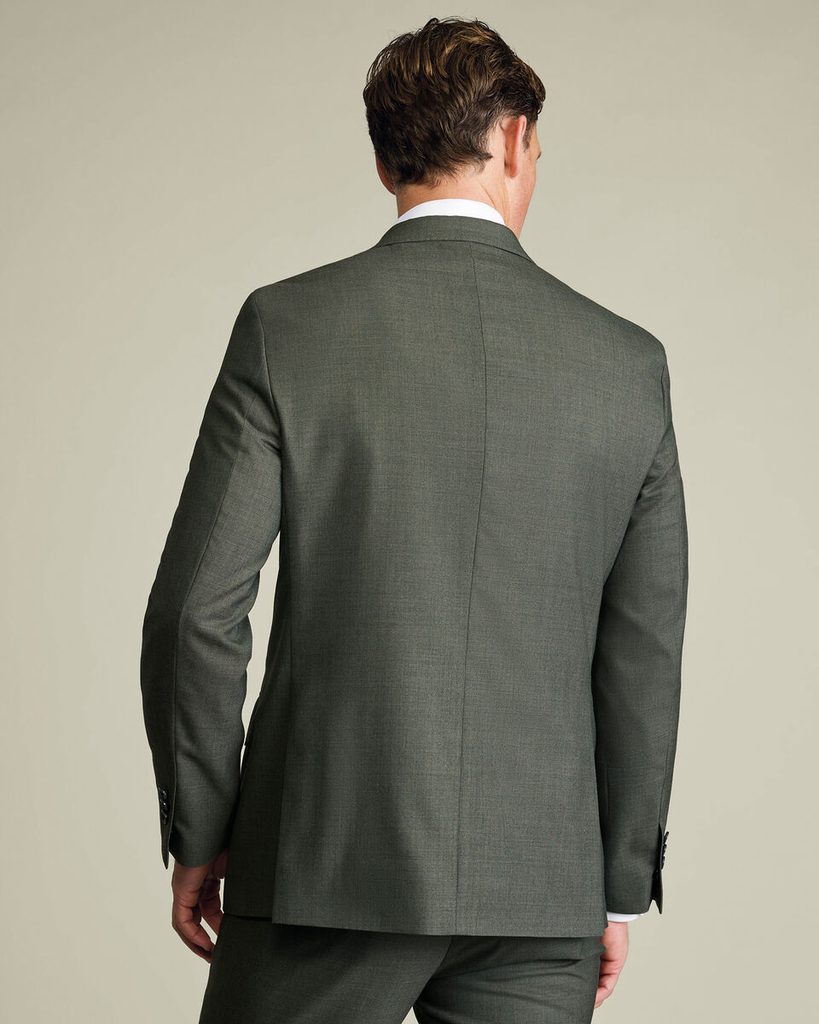 Slovo Sharkskin, jež najdete v názvu tohoto obleku, odkazuje na specifický způsob tkaní: do kepru se střídavě proplétají dva odstíny příze (světlejší a tmavší), které tvoří jemný diagonální vzor. Výsledkem je látka s lehkým, tlumeným leskem, který se mírně mění podle úhlu světla – odtud název podle žraločí kůže, která se ve vodě podobně třpytí.