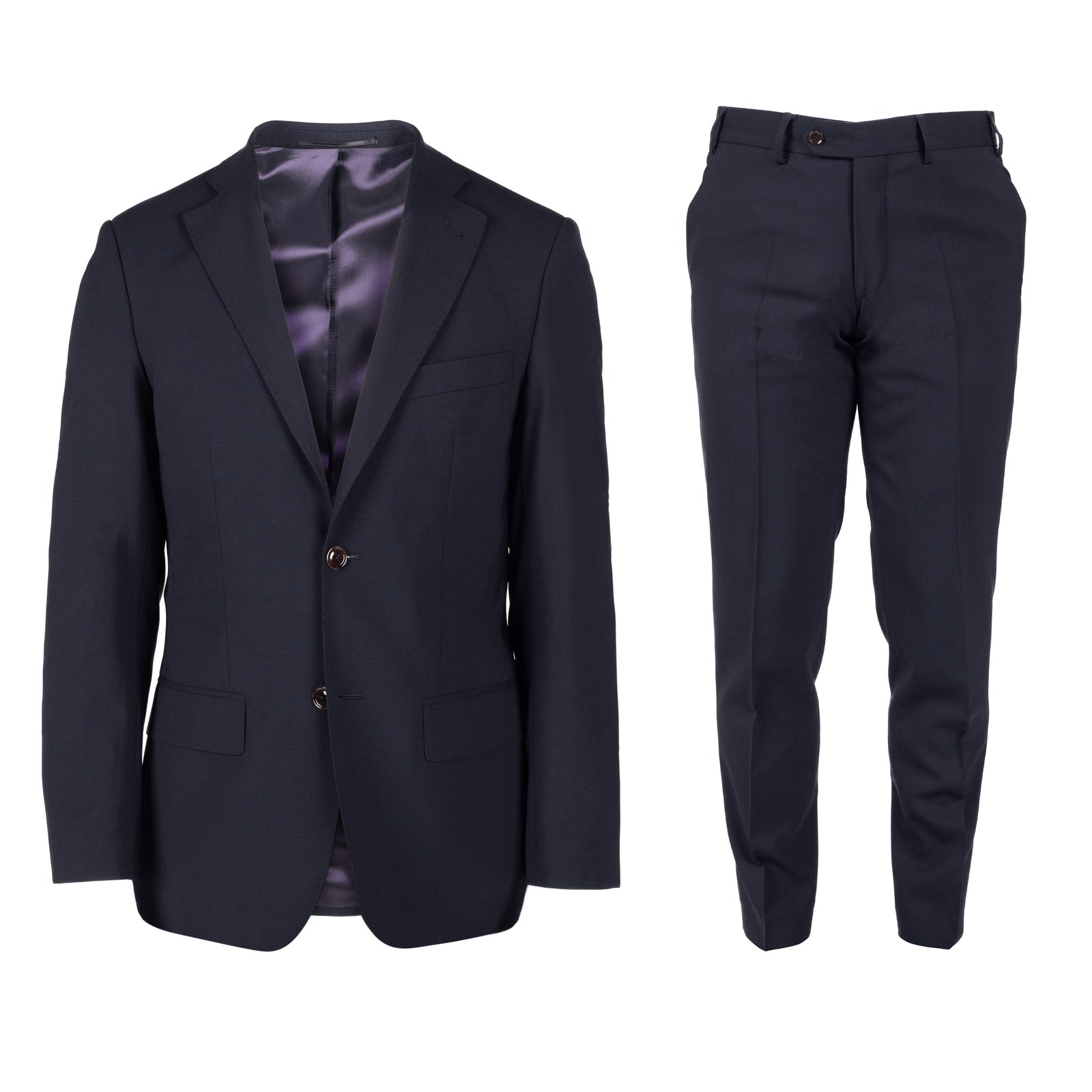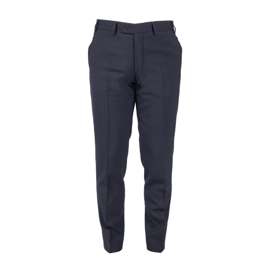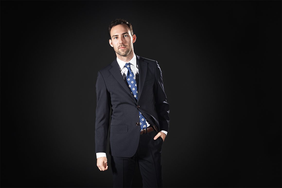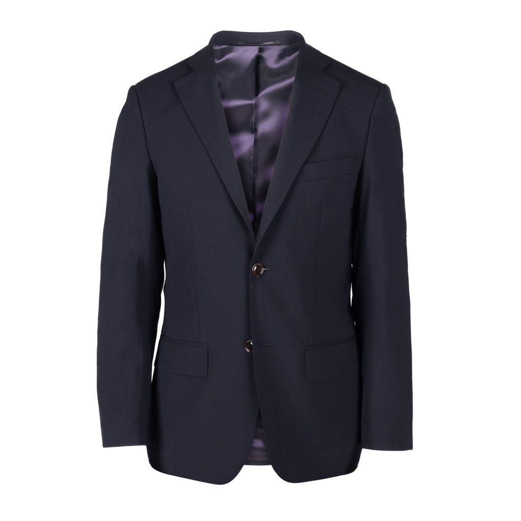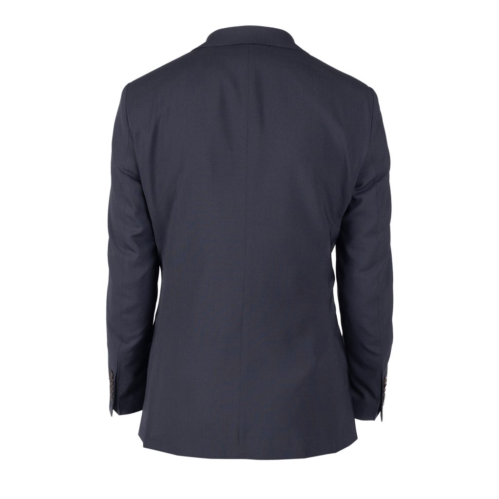 Tmavě modrý vlněný oblek - základ šatníku každého muže. Ten náš jsme ušili z italské vlny Marzotto s drobnou příměsí elastanu pro příjemnější nošení. K tomu jsme přidali kontrastní podšívku z čisté viskózy, protiskluzový pásový límec na kalhotách z dvojmo skanné bavlny a decentní štítek s logem John & Paul.