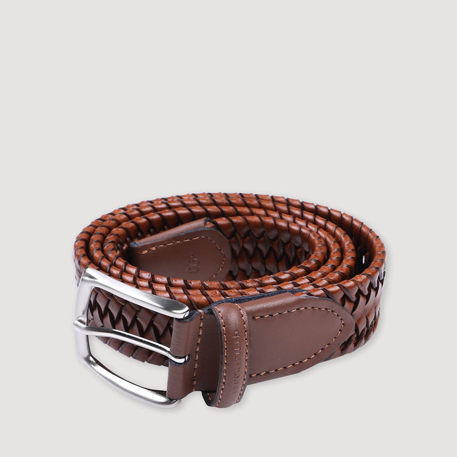 Brooksfield Braided Leather Belt — Cognac