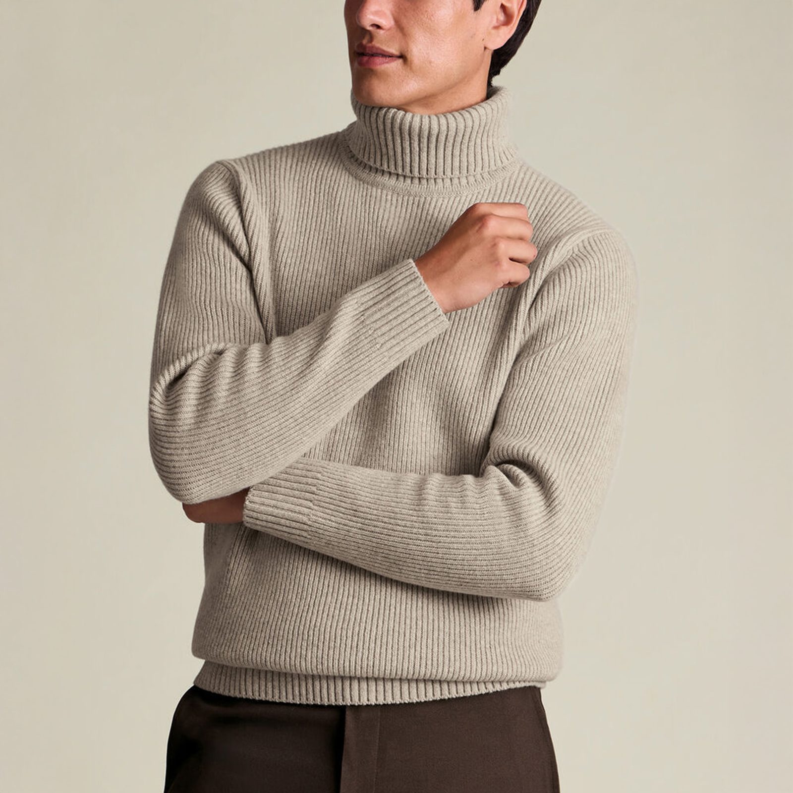Novinka Charles Tyrwhitt Pure Merino Chunky Roll Neck Jumper — Oatmeal Poctivý rolák z merino vlny