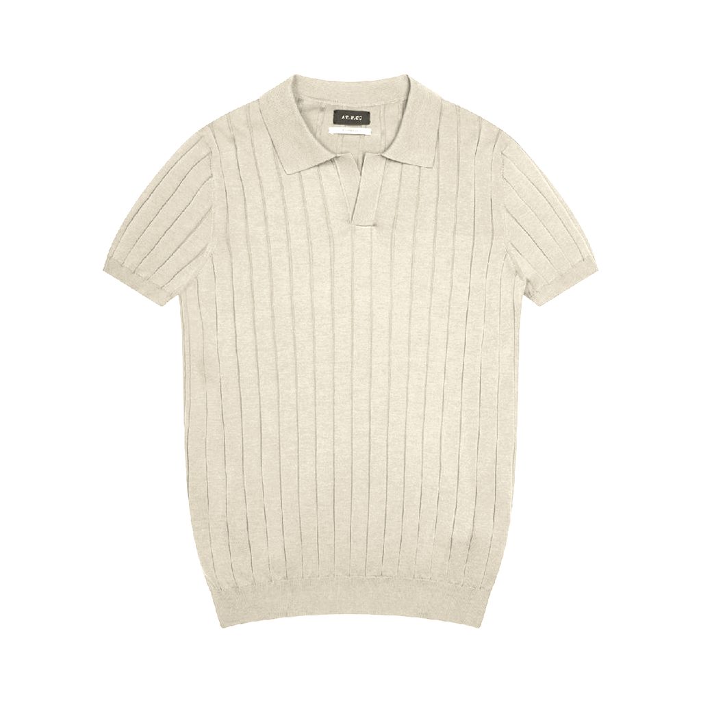 Pletené polo AT.P.CO s krátkým rukávem z čisté bavlny v krásné, decentní krémové barvě. Přední díl má žebrovanou strukturu, která dodává jinak jednoduchému kusu trochu charakteru. Límeček je letní, old money, bez knoflíků. Tak se to dnes nosí. A i kdysi!