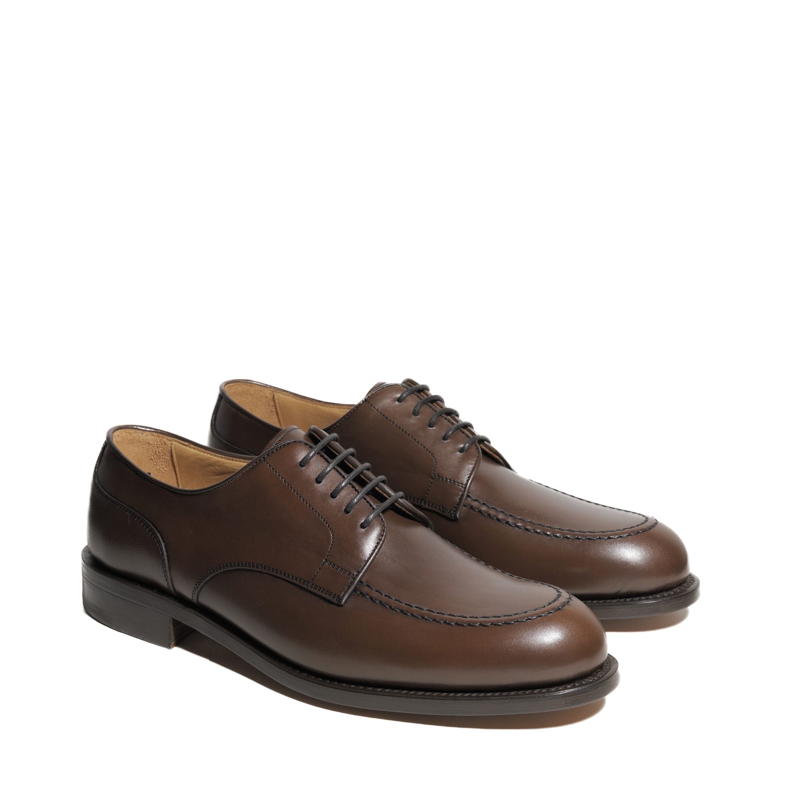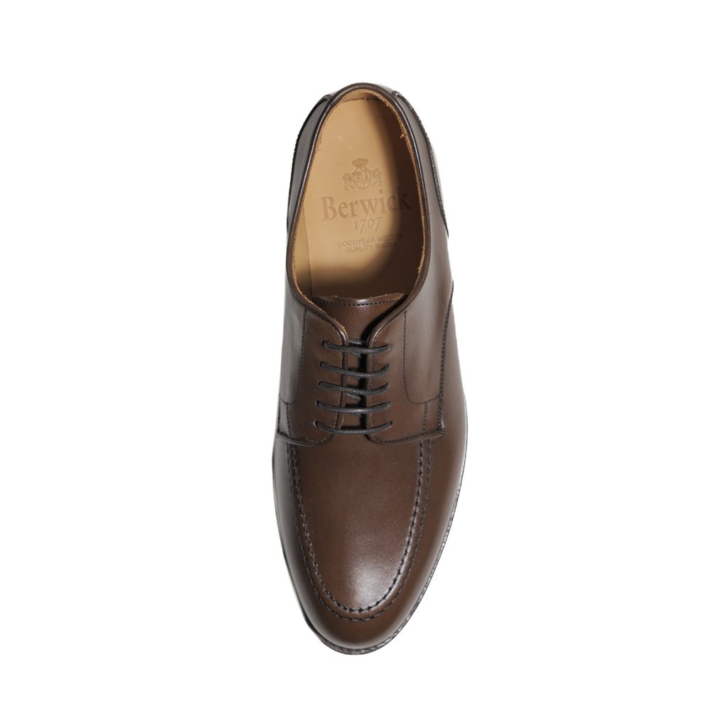 Derby, tedy polobotky s pohodlnějším otevřeným šňěrováním, jsou navzdory své menší formálnosti velmi zavedeným a prověřeným typem obuvi. I u nich ale je čím překvapovat. U tohoto limitovaného modelu z letní kolekce Berwick třeba mokasínovým prošitím – moc toe – na špičce. Jinak jde ale o klasiku skrznaskrz včetně kožené podrážky.