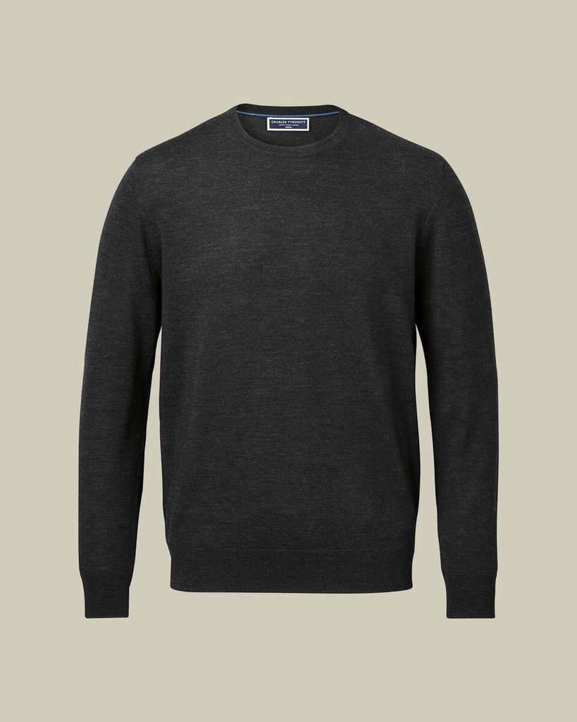 Charles Tyrwhitt Merino Crew Neck Jumper — Charcoal