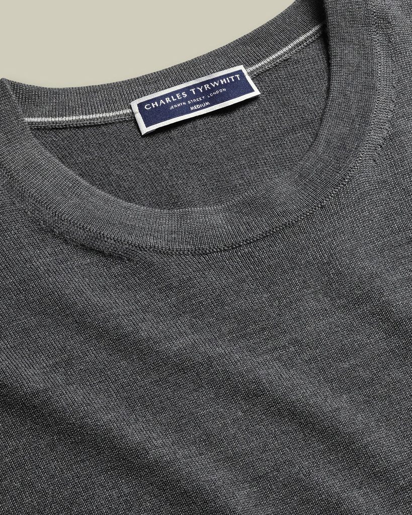 Charles Tyrwhitt Merino Crew Neck Jumper — Grey