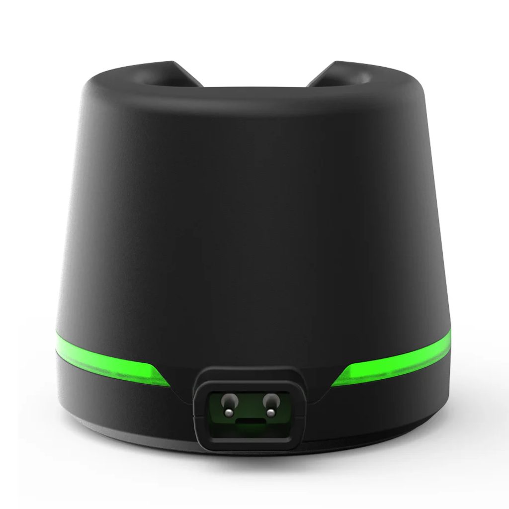 Strojek lze nabíjet dvěma způsoby: buď přes magnetický dock, který je součástí balení. Dock potom klasicky zapíchnete do zásuvky kabelem, nebo ho postavíte na jakoukoli bezdrátovou nabíječku. Druhá možnost je nabíjet samotný strojek bez docku, což lze přes běžný USB-C kabel.
