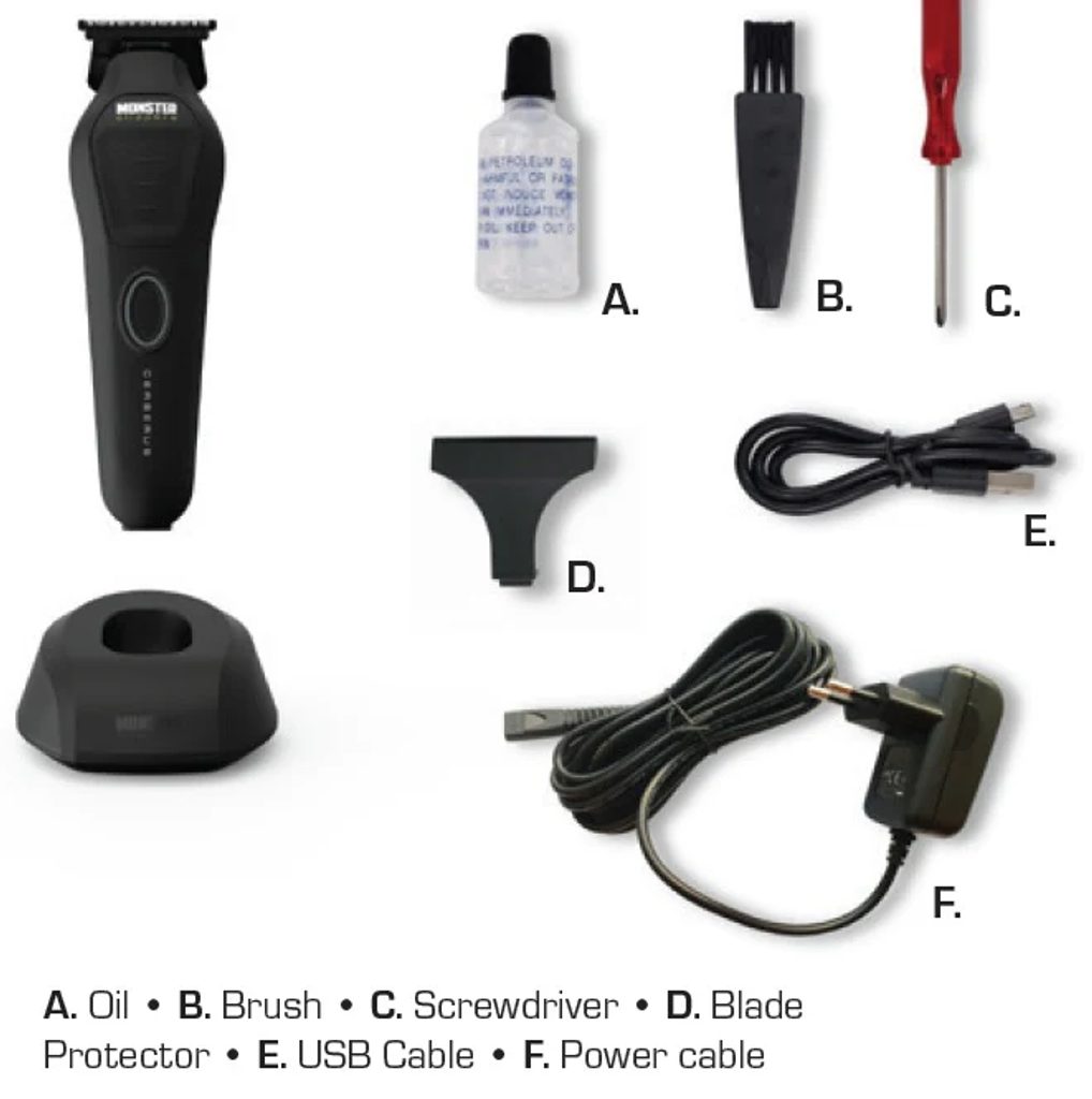Zastřihovací strojek Cerberus od profesionály milované značky Monster Clippers se pyšní motorkem s úctyhodným výkonem 9000 otáček za minutu. Hlavní přednost strojku – vektorová adaptabilita točivého momentu – pak znamená, že když ostří narazí na hustší vlasy, motor inteligentně přidá sílu, takže vždycky „stíhá stříhat“. Netahá, netrhá, je to takový malý zázrak. Celý strojek měří pouhých 15 cm, pohodlně sedne do dlaně a pracuje se s ním opravdu skvěle.
