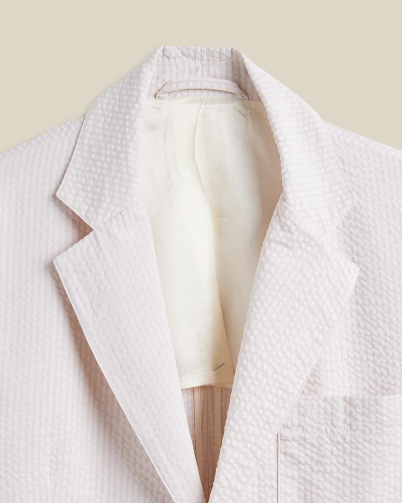 Seersucker, tedy látku zvlněnou či zkrabatělou specifickým způsobem jejího tkaní, vynalezli před pár set lety v Indii. Často ji ale nosili třeba Texané na proužkovaných oblecích, ale i uniformách – třeba strojvůdci parních vlaků, kteří při své práci zažívali pořádná horka. I od těch jim seersucker pomáhal. A i proto se pro něj vžil také název railroad stripe.