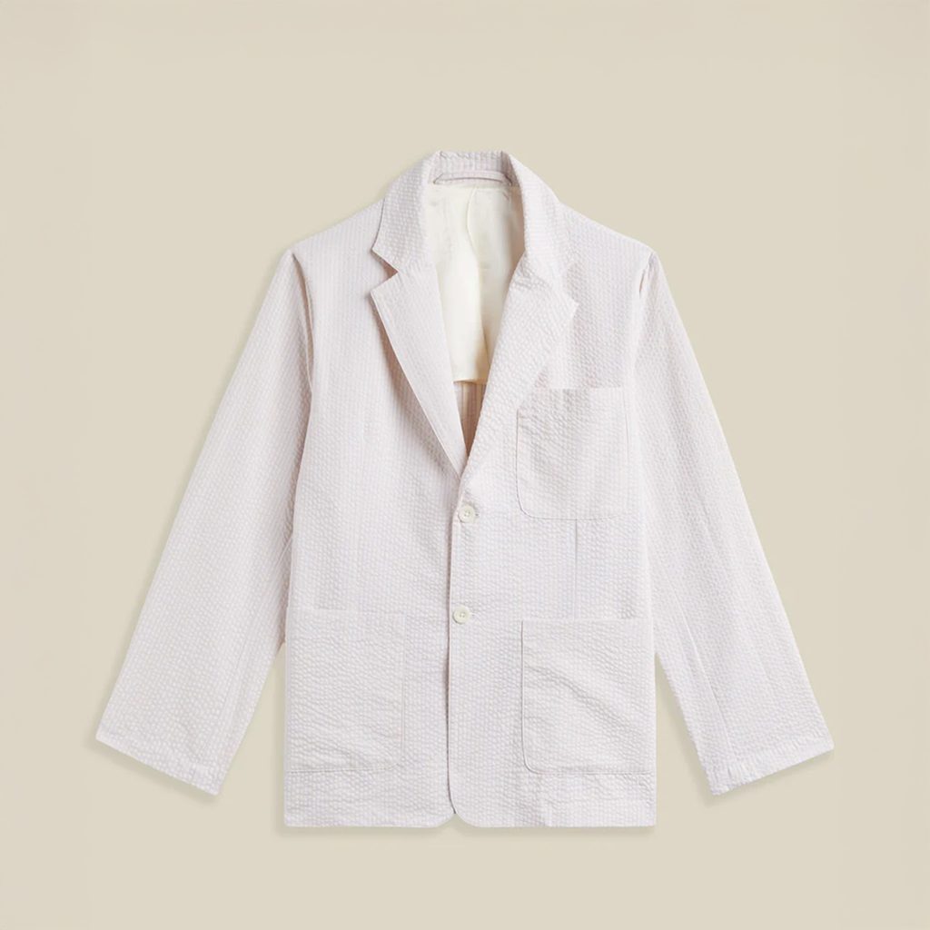 Definitivní letní sako. Atlantico Blazer od rodinné (4. generace!) severoportugalské značky Portuguese Flannel je zapamatovatelné hlavně seersucker texturou (o ní si víc přečtěte níže), potěší ale i perfektním střihem a trojicí nášivných otevřených kapes. Portuguese Flannel je tak trochu náš lovebrand, a přesto víme, že o tomhle saku je škoda dál psát. Musíte ho zkusit.