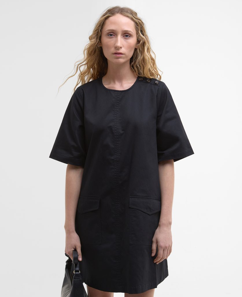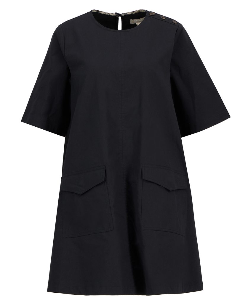 Volnější i volnočasovější (většinou to chodí ruku v ruce) šaty od britského Barbouru. Pohodlná konstrukce z bavlny je zaobalena do nedráždivého letního designu včetně volného střihu a dvojice bočních kapes s klopou. O dekorace však i přes jednoduchost nouze není – čeká Vás typický tartanový límec a okrasná trojice knoflíků na rameni.
