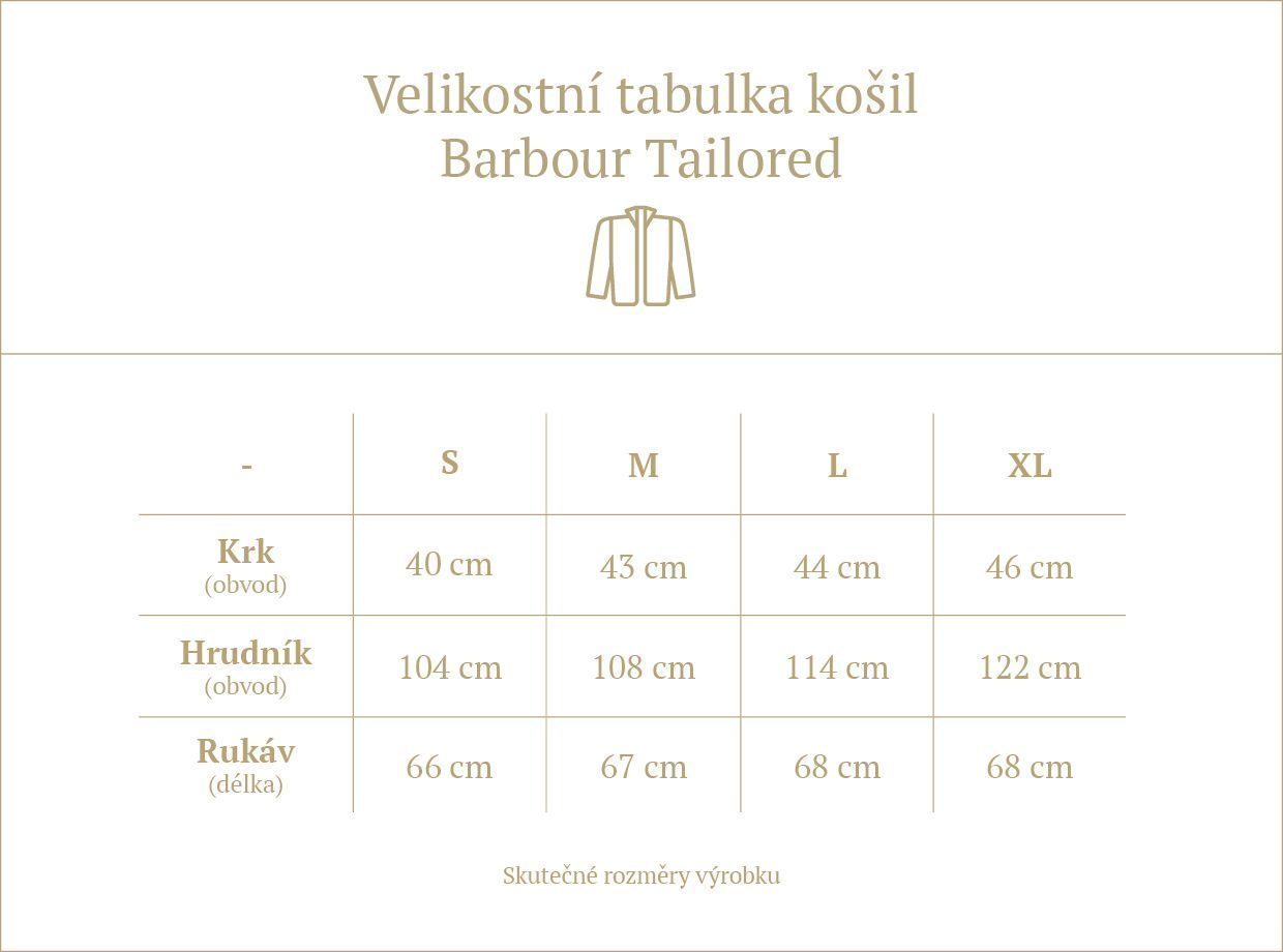 Modrá košile Barbour s velmi jemným manšestrovým vzorem, kontrastními bílými knoflíky, měkkým propínacím límcem a samozřejmě s obligátní náprsní kapsičkou. Univerzálně sofistikovaný a elegantní prvek do každého outfitu, který snese trochu ležérnosti. Krom toho je to košile velmi odolná a příjemná na nošení, jak taky jinak. Nechybějí obvyklí podezřelí, tedy tartanové detaily na vnitřní straně a nášivka Barbour - tentokrát právě na náprsní kapsičce.