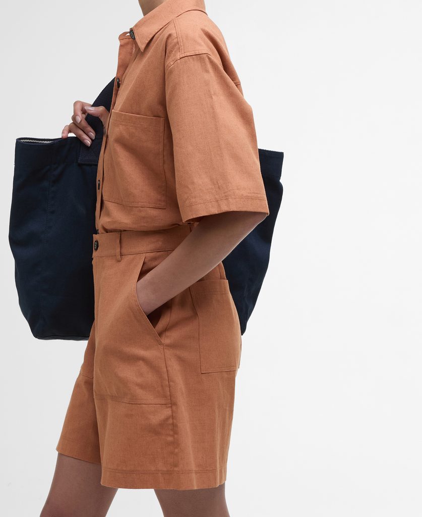 Workwear a dámské oblečení není sice historicky populární kombinace, kraťasy Cary od britského Barbouru přesto skýtají řádnou dávku elegance. Nejen díky osobité zrzavé barvě, ale taky díky výsostně letnímu volnějšímu střihu, pohodlné směsi bavlny a lnu.