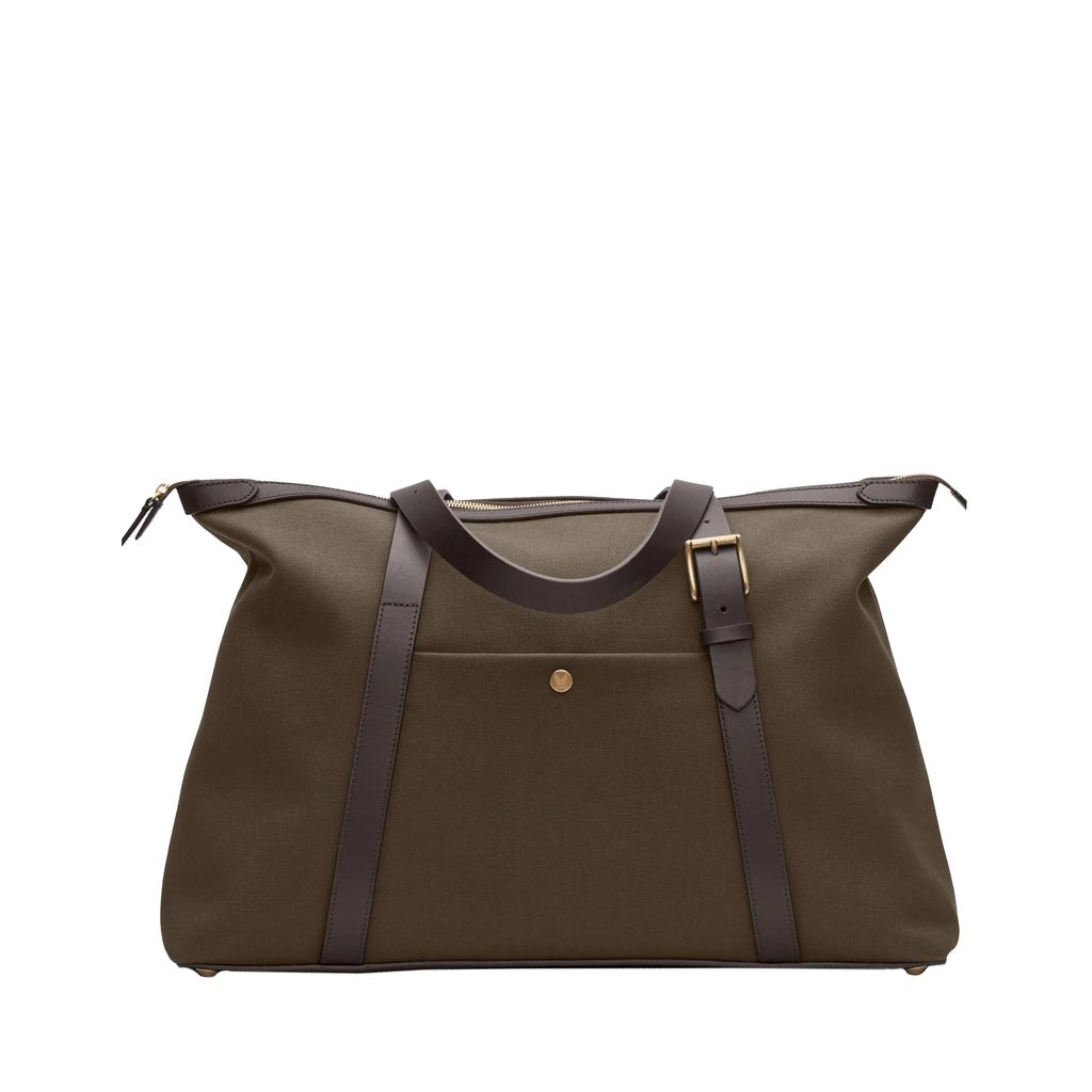 Perfektní víkendová taška (v klasickém kabelkovém, nikoli duffel bag, tvaru) z odolné plátnové bavlny. Uvnitř se svými 22 litry skrývá bohaté množství místa – právě takové, které zajistí možnost pohodlného nošení na ramenou.