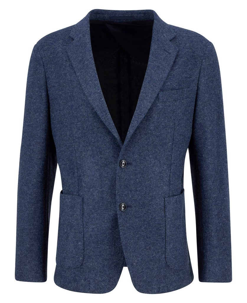 Sportovní sako vyrobené ze směsi vlny a bavlny v melange jersey žíhání, které působí neformálně a uvolněně. Má lichotivě vyštíhlený střih, klasické jednořadé zapínání na 2 knoflíky, dvojici otevřených bočních kapes a klasickou klopu. Jako malá poklona venkovské módě téhle značky slouží tartanový vzor skrytý na spodní straně límce.
