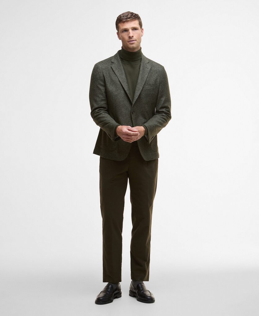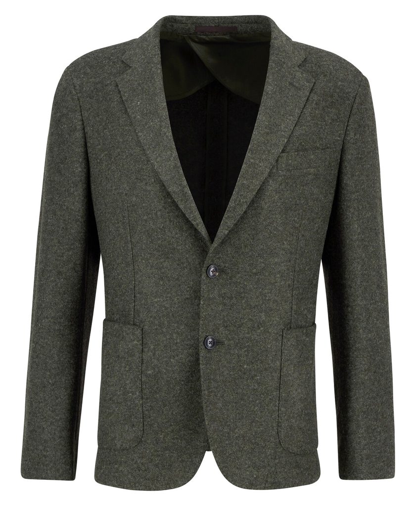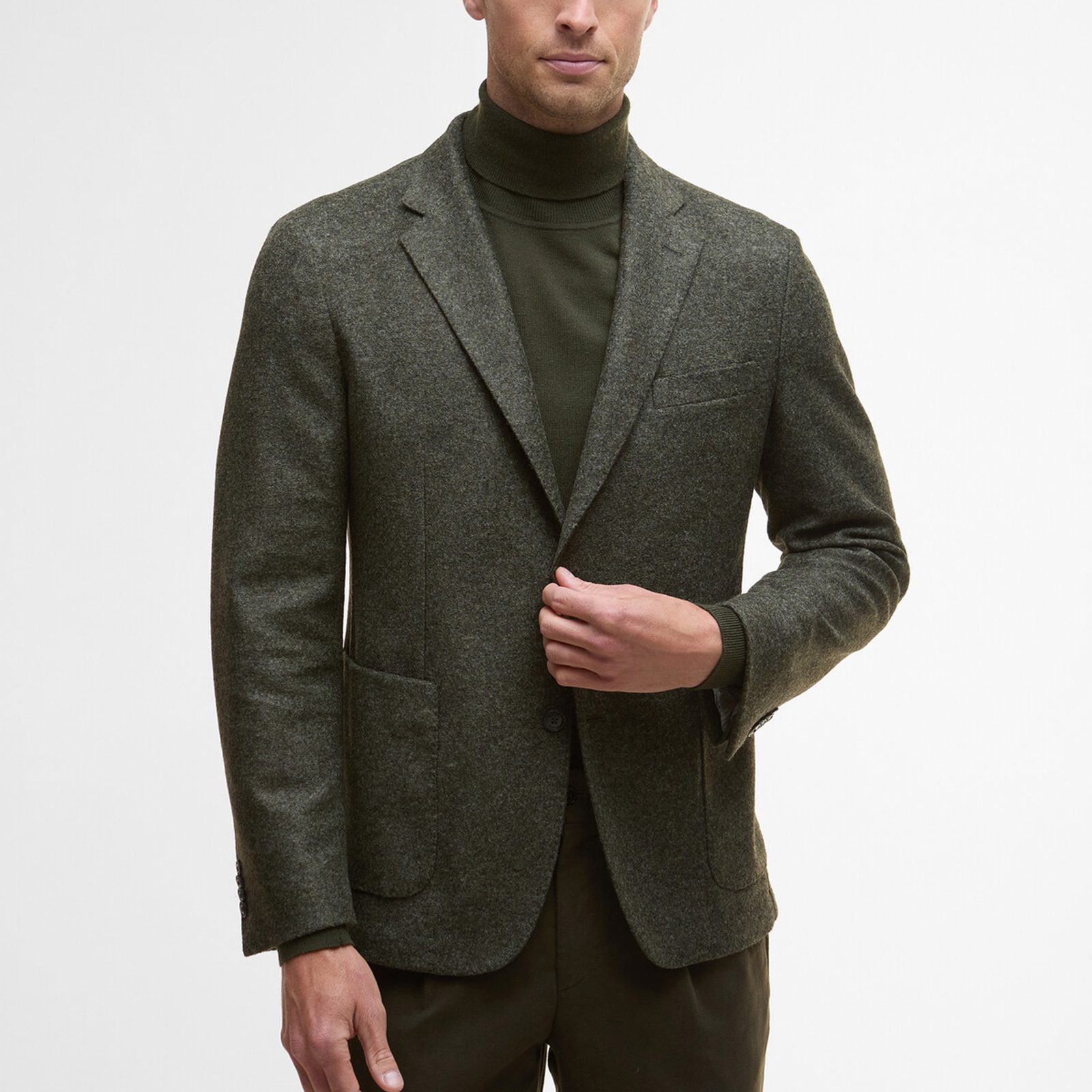 Sportovní sako vyrobené ze směsi vlny a bavlny v melange jersey žíhání, které působí neformálně a uvolněně. Má lichotivě vyštíhlený střih, klasické jednořadé zapínání na 2 knoflíky, dvojici otevřených bočních kapes a klasickou klopu. Jako malá poklona venkovské módě téhle značky slouží tartanový vzor skrytý na spodní straně límce.
