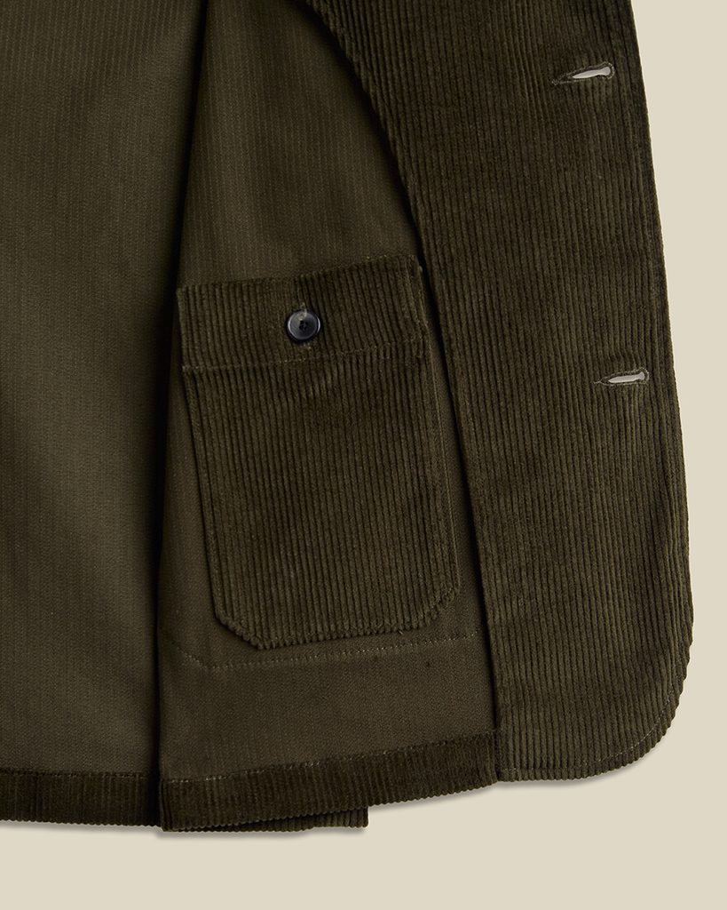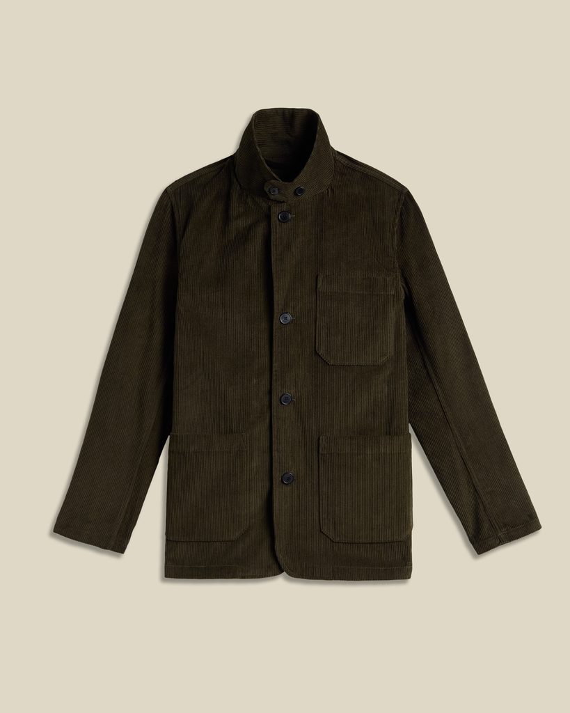 Sako, které si nehraje na formálnost, ale rozhodně umí udělat dojem. Z pevného bavlněného manšestru, v tmavě zelené barvě, která neokouká. Praktické velké kapsy, pohodlný střih a tři knoflíky, které drží siluetu civilní, ale ne fádní. Vezmete ho přes košili, přes svetr, klidně i jen tak s tričkem. Zkrátka – pracovní sako, které pracuje pro vás.