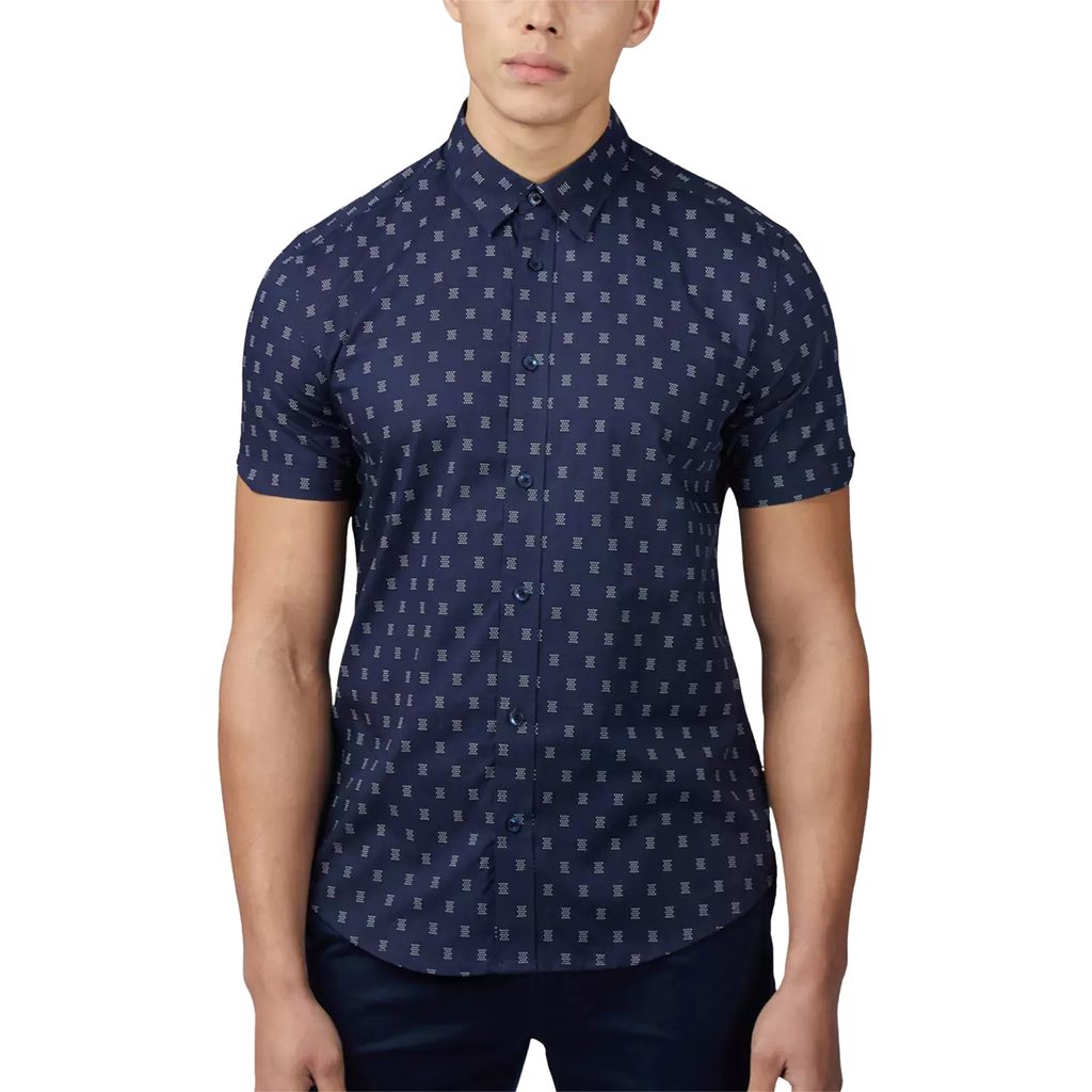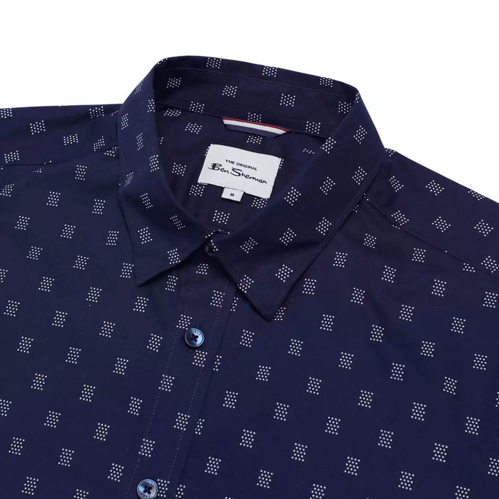 Business casual? V létě jedině s krátkým. Decentní vzor zdobící tmavomodrou košili od proslulé vzorařské značky z ní dělá univerzální kousek, který si můžete vzít do parku i do kanceláře. V minimalistickém designu je ušita s klasickým límcem a moderně zaobleným spodním lemem.