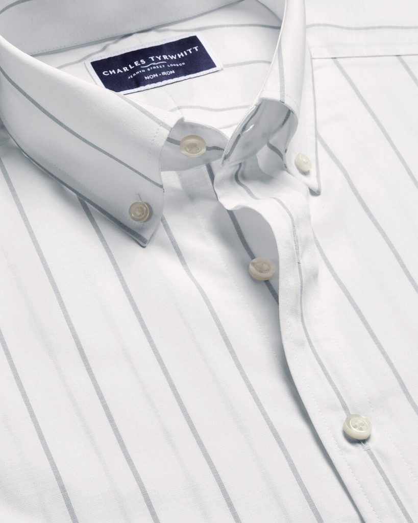 Charles Tyrwhitt Non-Iron Stretch Poplin Slub Shirt — White Slim fit