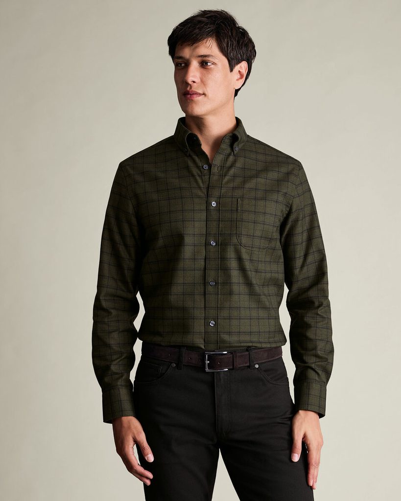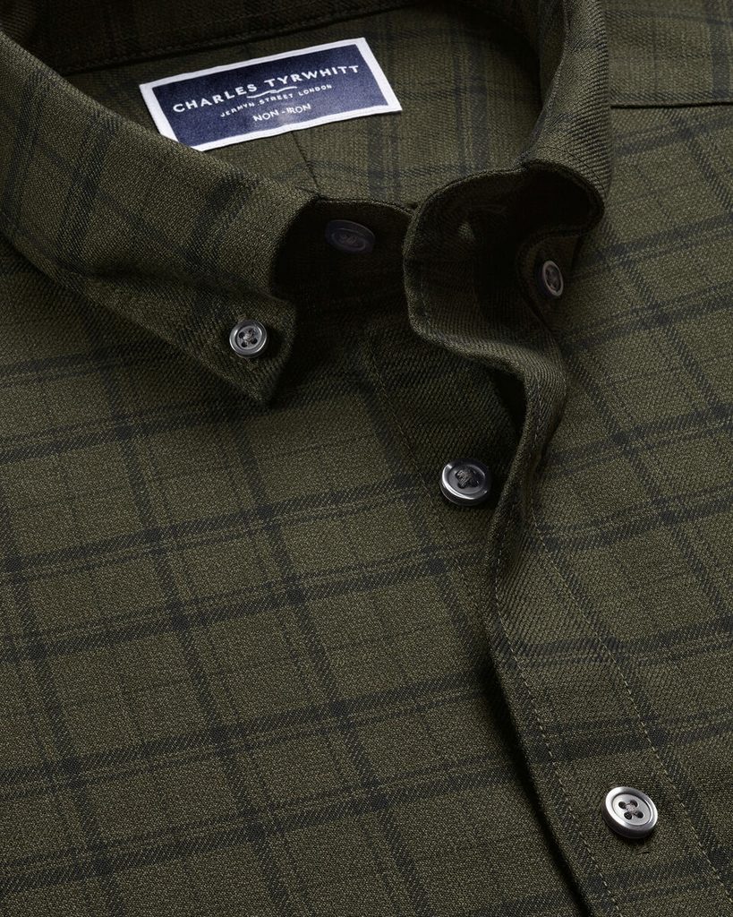 Charles Tyrwhitt Non-Iron Twill Check Shirt — Olive Green / Navy