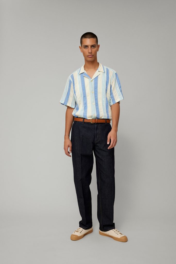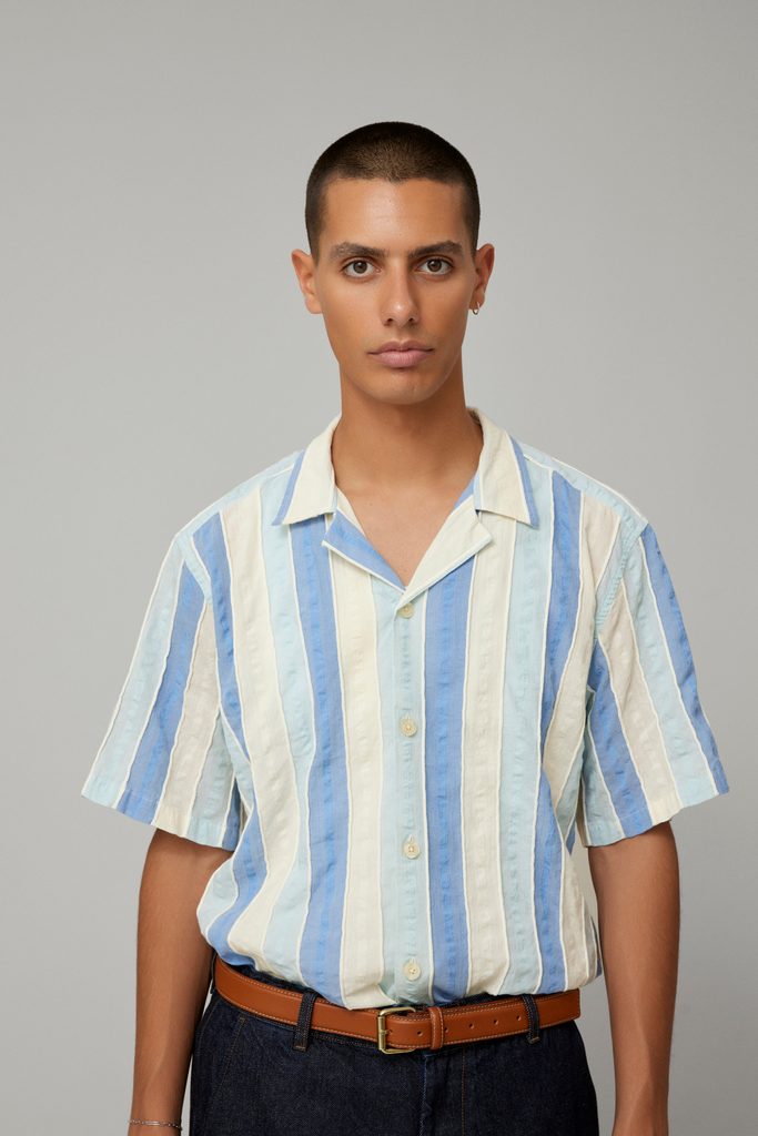 Dresscode na letní relax nelze podcenit. Naštěstí už nemusíte koukat jinam. Modro-bíle pruhovaná košile z dánského studia forét je navržená přesně na tohle. Má volný střih, krátký rukáv a plochý límec, nejvíc ze všeho ale potěší seersucker úprava bavlny, která z ní dělá mimořádně prodyšný a pohodlný kousek. (Neptejte se nás jak, na to jsme krátcí. Prostě to na to léto funguje.)