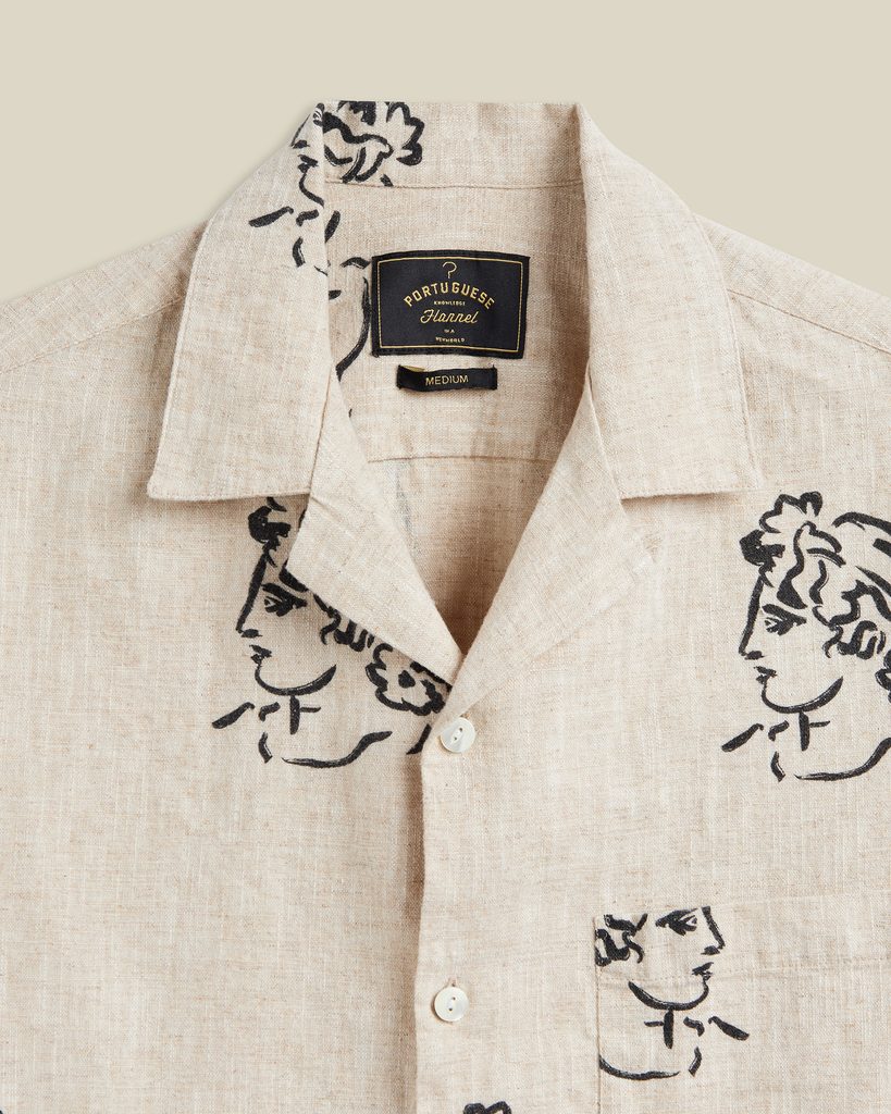 Coimbra (dříve Conimbra) je město ve středním Portugalsku původně založené Římany, souvisle osídlené bezmála 3 tisíce let. V Coimbře sídlí nejstarší univerzita portugalsky mluvícího světa, která o více než padesát let předchází tu naši Českou. Jméno tohoto města příhodně nese tato košile, která staví na výrazném celoplošném motivu antické busty a uvolněném letním střihu. Tento vzor jí dodává osobitost a snad trochu hloubavý charakter, přesto je dobře nositelná a snadno kombinovatelná s jednoduššími kousky. Otevřený límeček podtrhuje ležérní siluetu a podporuje nenucený, dovolenkový dojem.