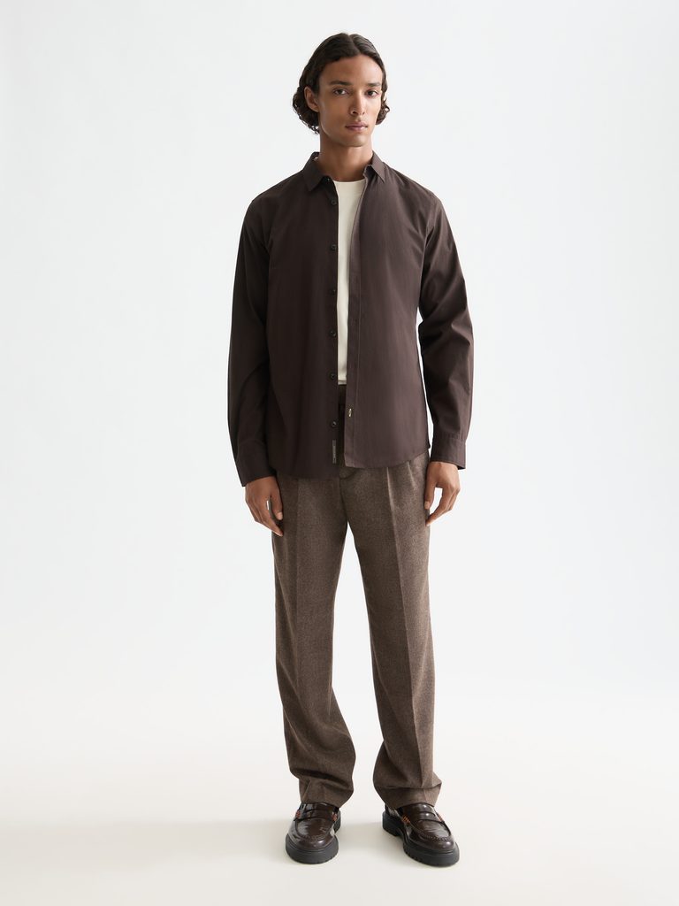 Košilo-bunda Scotch & Soda v tmavě hnědém odstínu je univerzální kousek, který snadno zvládne roli lehké svrchní vrstvy i klasické košile. Má čistý, minimalistický střih a decentní pruhovanou texturu, která zblízka zaujme, ale z dálky působí elegantně nenápadně. Ideální volba pro vrstvení přes tričko nebo tenký svetr.